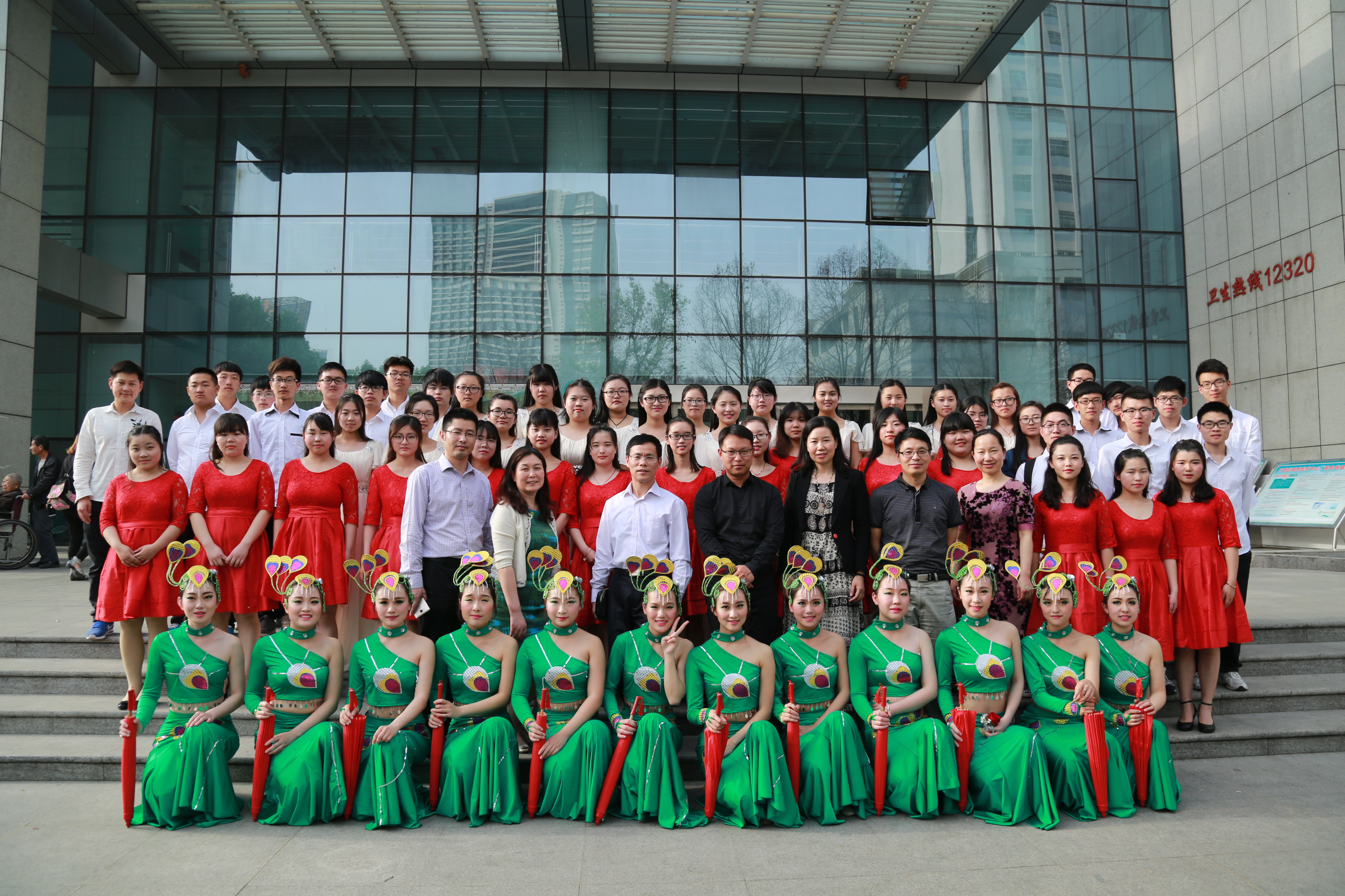 活动中,我院学生表演合唱《外婆家的澎湖湾》和民舞《红是红啊绿是绿》。合唱学生委婉动听的歌声、别致的队型,引起台下阵阵掌声。舞蹈表演中,学生们更是以饱满的精神状态、整齐而富有感染力的动作感染全场,受到医院领导和老师们的一致好评。