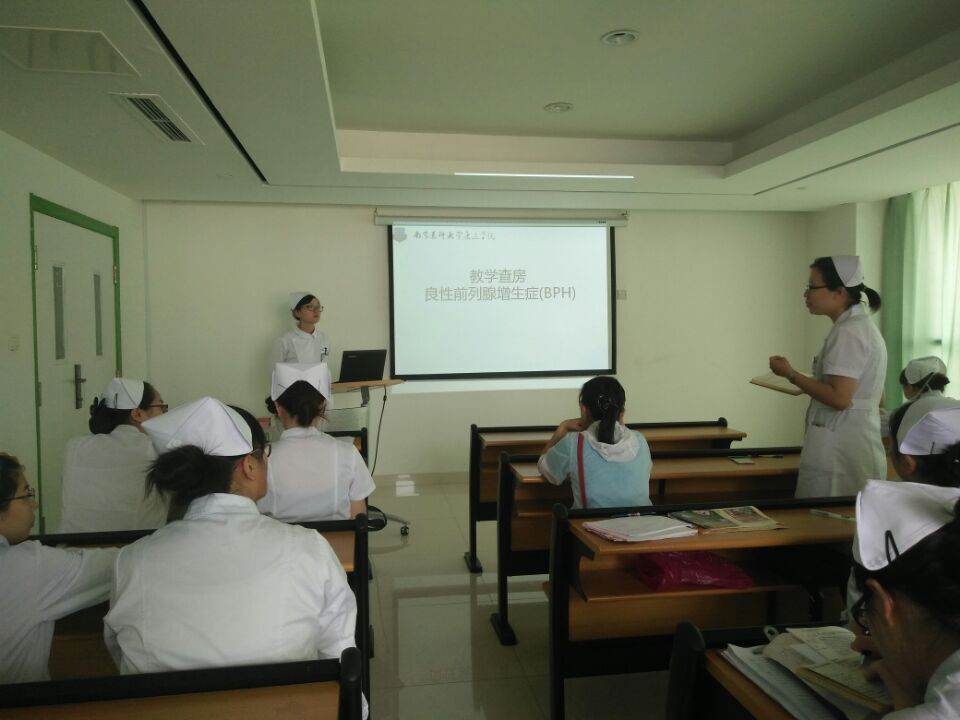 从7月22日至7月24日每天下午13时,护理学系老师以小组为单位在连云港第一人民医院多媒体示教室为护理专业实习生分别开展4次护理教学查房, 教学查房由胡怀宁老师主持,许丽、宋广玉、曹建英、张洁等指导代教老师参加。