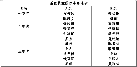 相信通过这次比赛,选手们能够更加熟练的掌握操作技巧,并从中吸取经验。现对此次比赛中表现优异的参赛选手予以表彰。 公布获奖名单如下:
