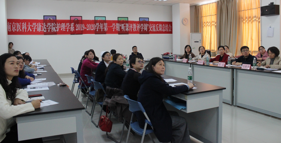 2019年11月5日上午10时,在学院护理楼309教室,护理学系顺利举办了2019-2020学年第一学期听课“评教评学周”交流反馈会,院领导陈龙,教学质量评估与促进中心主任冯新平,教务处副处长聂倩,护理学系主任张海林,以及护理学系教学督导、教研室和护理实训中心主任、教研室秘书与教师代表、辅导员代表、所有专职教师与教辅出席本次活动。护理学系秘书许凤琴担任主持人。